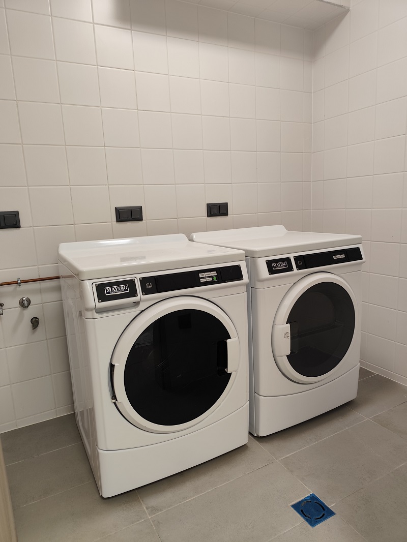 Épületünkben 2-3 szobára jut egy fürdőszoba és egy konyha, utóbbiban hűtőszekrény, mikrohullámú sütő, étkezőasztal, valamint alap konyhai eszközök találhatók. A földszinten lévő mosóhelyiségünkben mosógép, szárítógép és vasaló áll rendelkezésre.